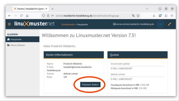 - Klick nach der Anmeldung auf „Passwort ändern“.